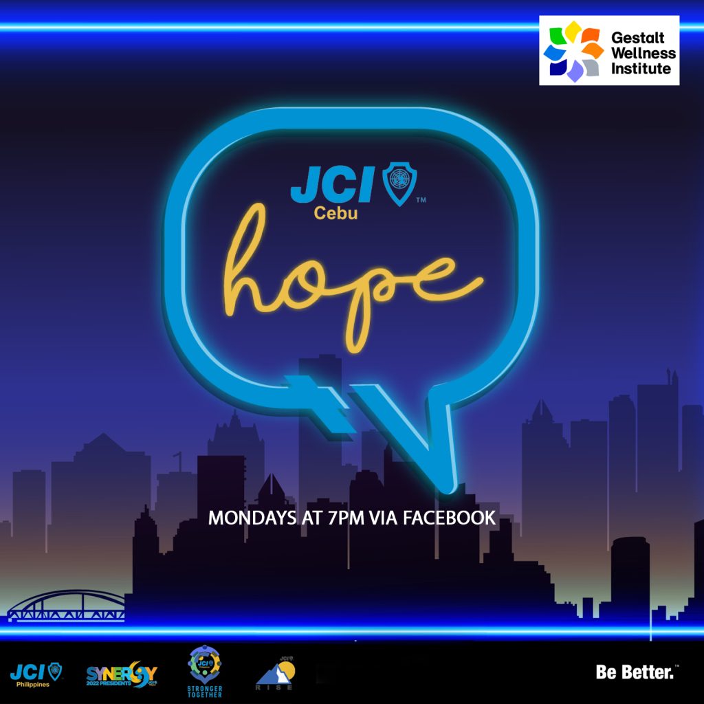 Hosted by JCI Member Daegie Montermoso with our resident mental health expert, Mr. Philipp Chen Tan. The program operates twice a month on Mondays featuring guests who can help provide meaningful experiences that can be shared. This is co-presented by Gestalt Wellness Institute, a mental health clinic, where our resident mental expert is a part of.